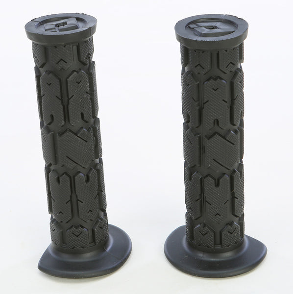 <ul> <li>Designed for comfort and control by utilizing large raised pads to dampen vibrations</li> <li>Deep grooved channels prevent mud and water from packin gup</li> <li>Closed end for added protection in the event of a crash</li> <li>3/4 Flange eliminate cutting and provides access to thumb throttle</li> <li>Fit 7/8in. bars</li> </ul>