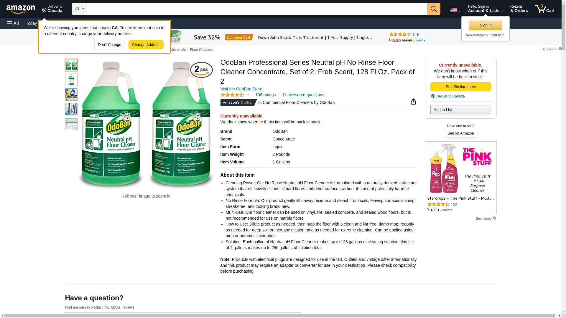 OdoBan Professional Series Neutral pH No Rinse Floor Cleaner Concentrate, 2 Gallons