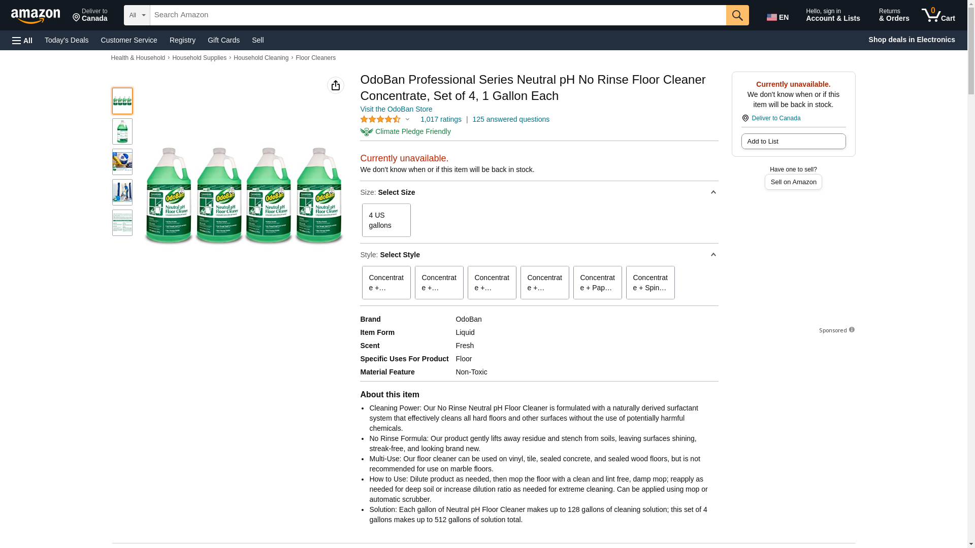 OdoBan Professional Series Neutral pH No Rinse Floor Cleaner Concentrate, 4 Gallons