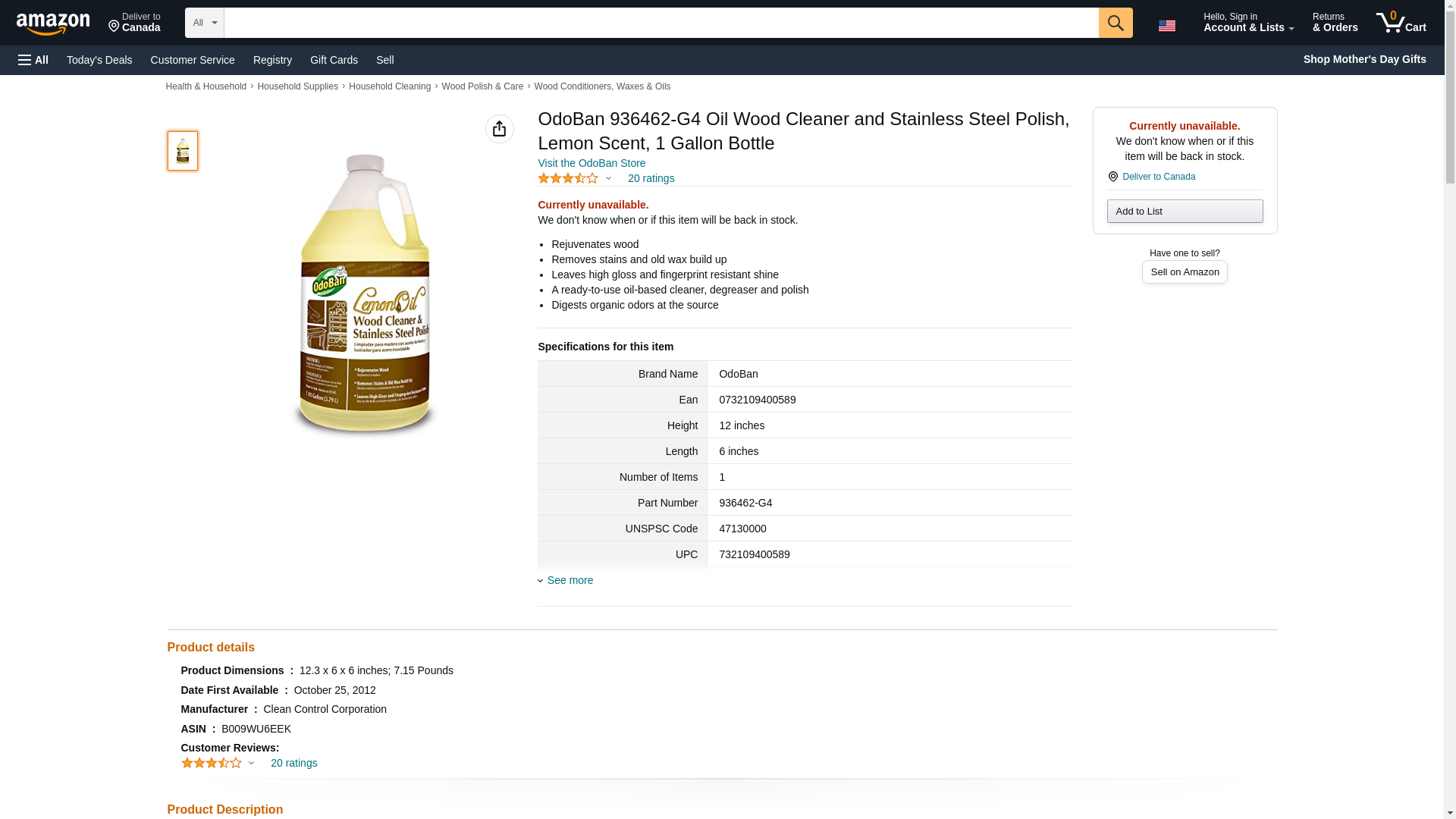 OdoBan 936462-G4 Oil Wood Cleaner and Stainless Steel Polish, Lemon Scent, 1 Gallon Bottle