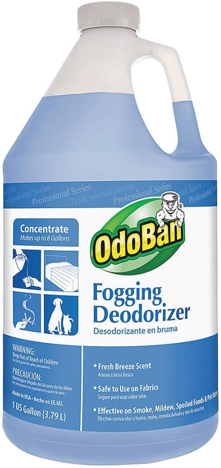 Deodorizer, Odor Eliminators, Fragrance Fresh Breeze, Container Type Jug, Container Size 1 gal, Recommended Dilution 1:8, Air Freshener Form Liquid, Blue, Fabric, None, Ready to Use/Concentrated Concentrated, Biodegradable Yes, Features Fogging Penetrates Cracks and Crevices, Net Weight 1 gal, NSF Rating Not Rated, Product Series FogMaster, JR., Standards EPA Registered, VOC Content 1 Percent, Package Quantity 4