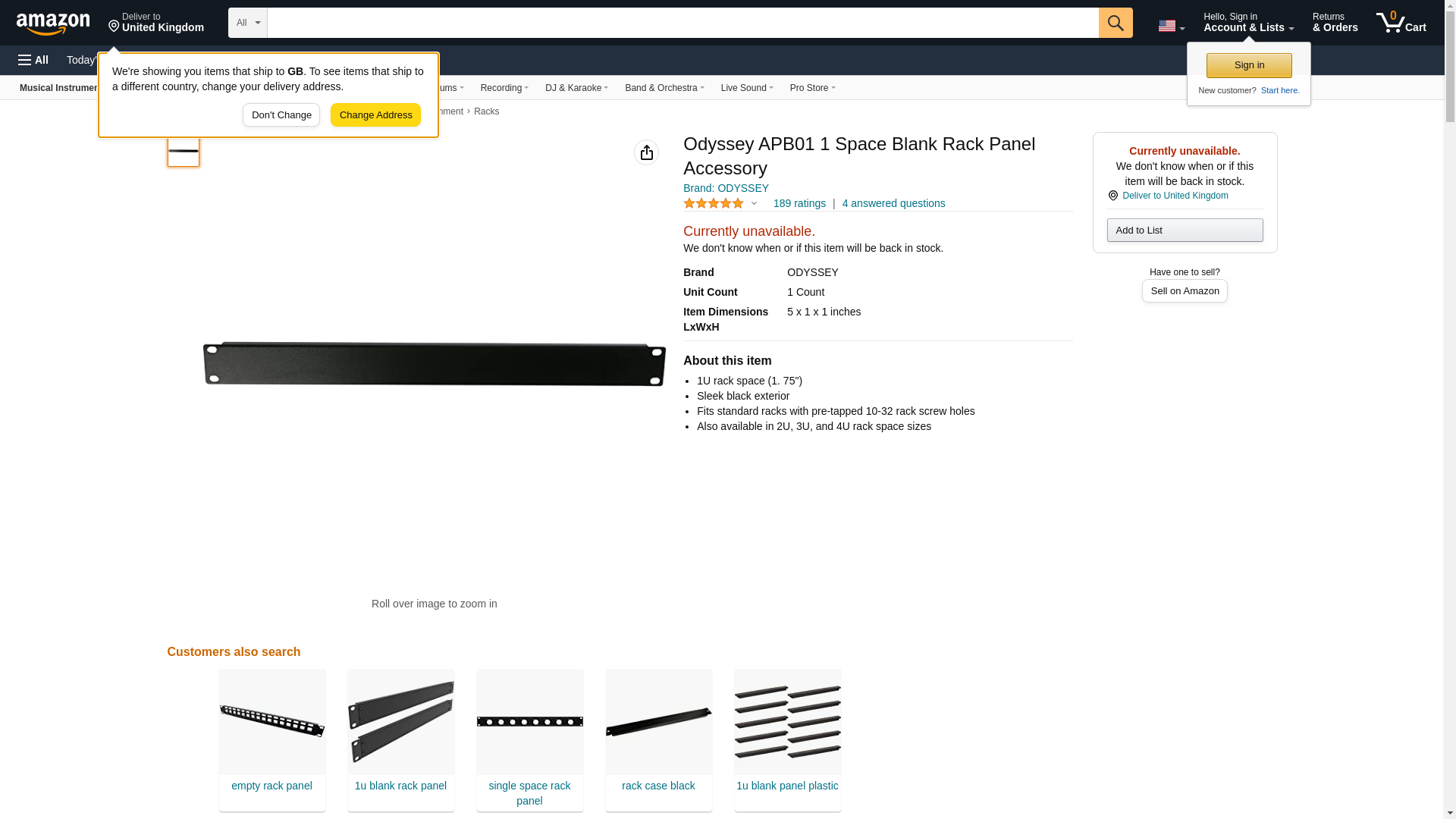 Odyssey APB01 1 Space Blank Rack Panel Accessory