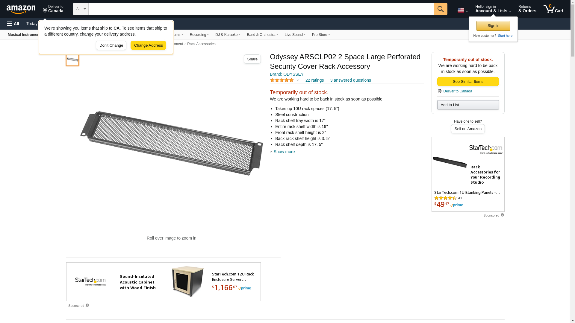 Odyssey ARSCLP02 2 Space Large Perforated Security Cover Rack Accessory