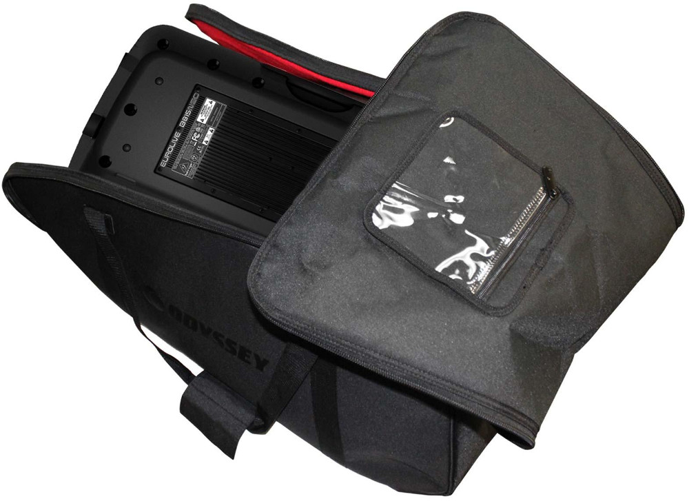 - Features: Odyssey BRLSPKLG Redline Series Large Speaker Travel Bag. Fits Many Large Size 15" Molded Speakers. Durable Ballistic Nylon Black Exterior. Padded Soft Polyester Blend Red Interior