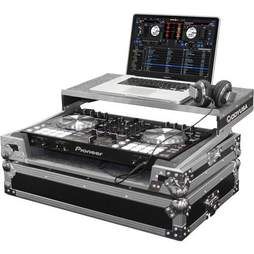 DDJ-SR Case. "Odyssey presents the Flight Zone FZGSPIDDJSR case featuring patented Glide Style gear platform, great for positioning laptops, tablets, effect processors, and other performance essentials where you want over the controller. Specifically made for the Pioneer DDJ-SR, it also features exclusive, patent pending, high-density bevel foam interior that neatly angles upward raising the controller for an efficient control surface. The stylish V-Cut removable panel allows for easy access to the front controls and headphone/mic jacks. A spacious ventilation pit under the controller is ideal for storing cables and other accessories."