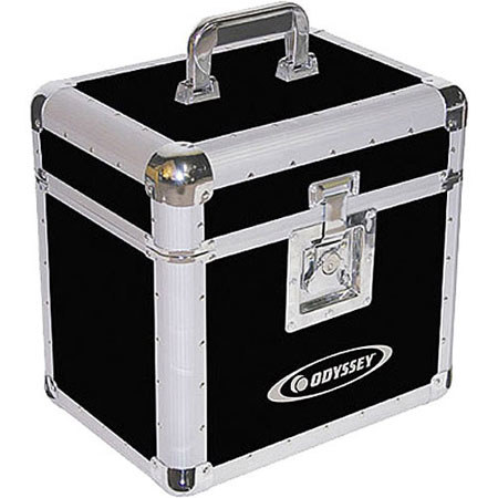 Odyssey KROM Series Record Utility Case for 70 Individual 12" Vinyl Records and LPs with Foam-Lined Interior, Secure Lock, and Handle, Black