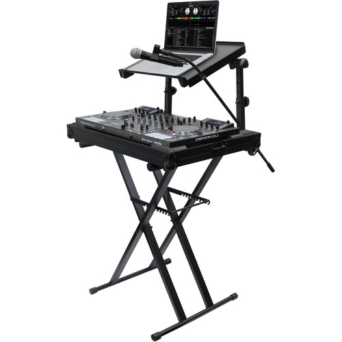 - Includes X-tier stand, mic boom with gooseneck and mic clip, and a laptop/gear shelf