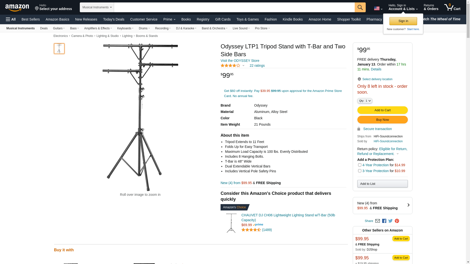 Odyssey LTP1 Tripod Stand with T-Bar and Two Side Bars
