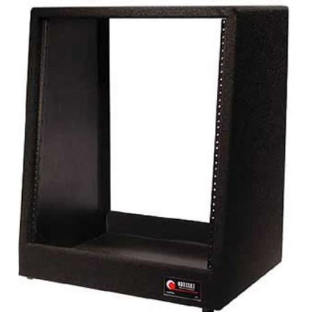 Our carpeted studio rack features 3/4" plywood construction and an angled face for easy viewing and access. Open back, no panels front or rear. 12 spaces.</p>