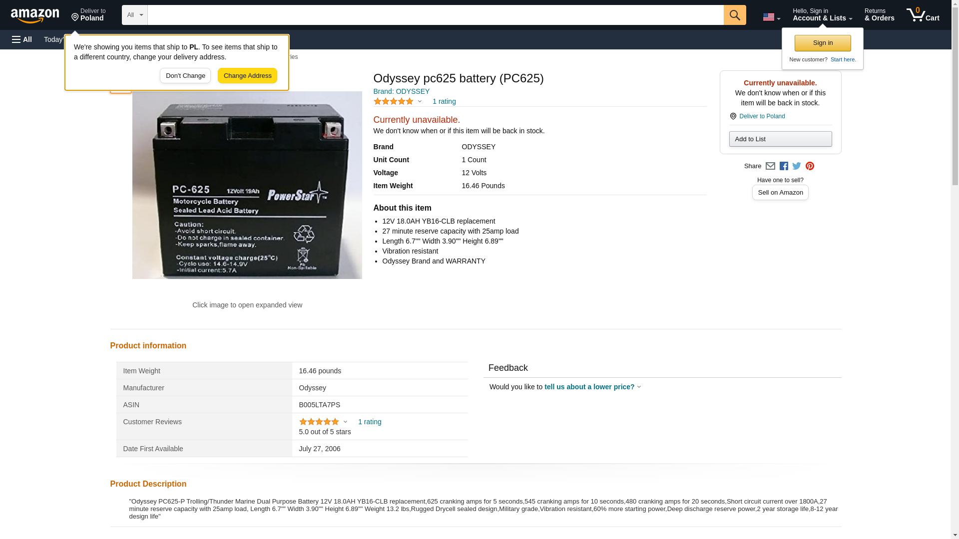 ![]() automotivestuff.com | ODYSSEYBATTERY-PC625 | 1 | Add To Cart | 1 | 1 @ $196.43 |