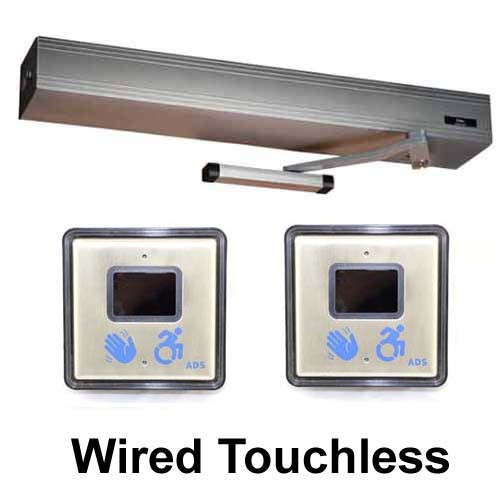 Hardwire Automatic Door Operator Package for Entrance Door - Includes Ditec HA8-SP 39" Header Clear Finish and (2) x 4-1/2" Square Wired Touchless Wall Switches
