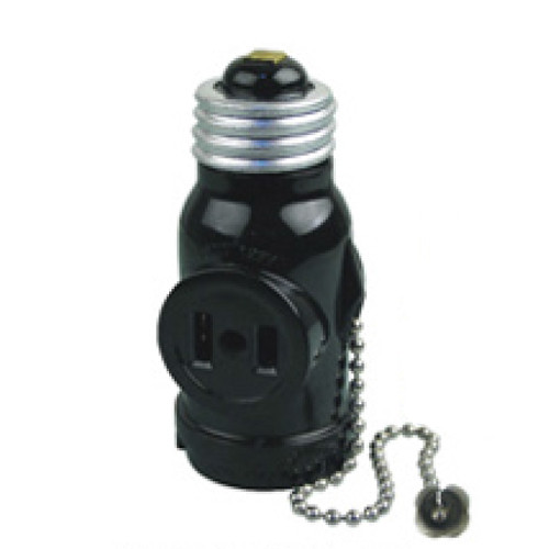 Medium E26 Edison Screw Base Extension with NEMA1-15R Receptacles at Both Sides, w/160mm Pull Chain