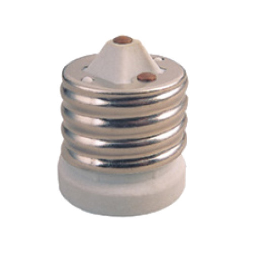 Mogul base to medium base porcelain reducer adapter or converter, nickel plated bronze screw shell. Rating: 660W,660V