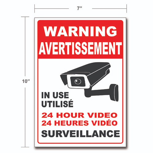 SEC-ACC-CCTV-SIGN-FRENCH, CCTV Bilingual Warning Sign SST201 Stainless Steel 10*7 Inch Thickened