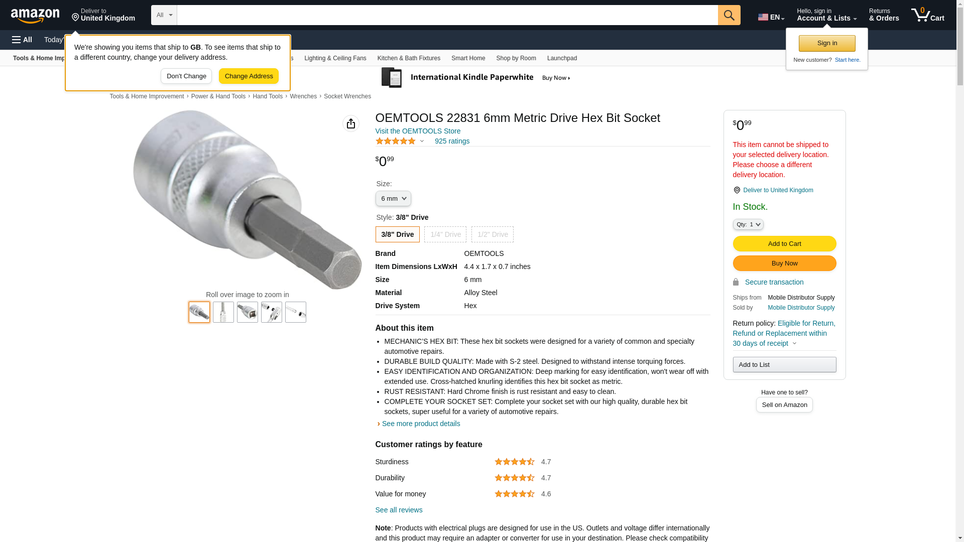 OEMTOOLS 22831 6mm Metric Drive Hex Bit Socket. Deep marking for easy identification won't wear off with extended use...