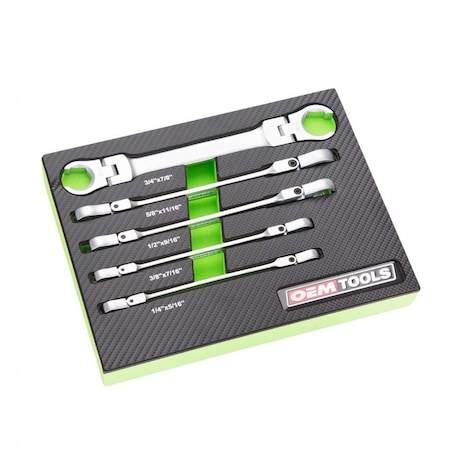 OEMTOOLS 22063 5 Piece Flex Head Flare Nut Wrench Set, SAE Flare Tool, 1/4” x 5/16”, 3/8” x 7/16”, 1/2” x 9/16”, 5/8” x 11/16 “, 3/4” x 7/8”