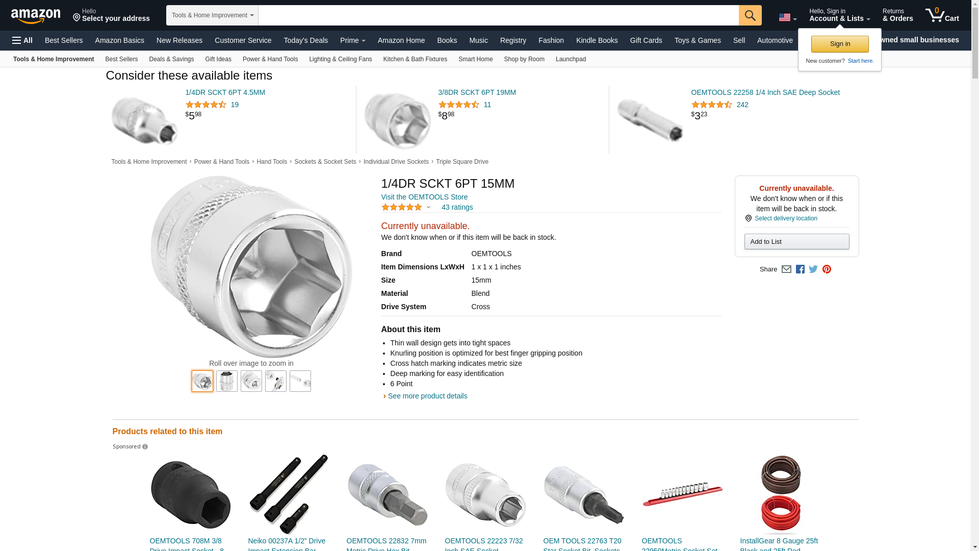 Get the Best Performance with OEMTOOLS 1/4DR SCKT 6PT 15MM 22252 parts at JEGS. Shop Now at the Guaranteed Lowest Price!