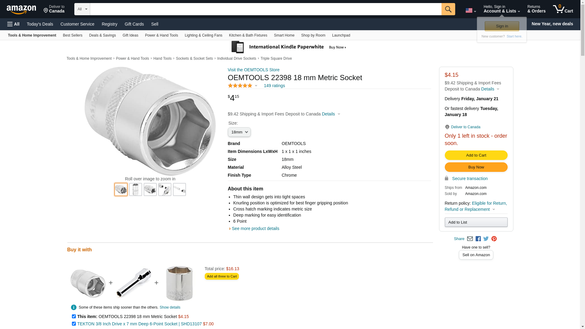 OEMTOOLS 22398 18 mm Metric Socket. Thin wall design gets into tight spaces. Knurling position is optimized for best ...