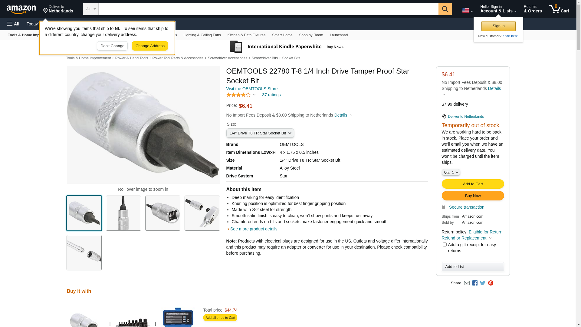 OEMTOOLS 22786 T-30 3/8 Inch Drive Tamper Proof Star Socket Bit. Deep marking for easy identification. Knurling posit...