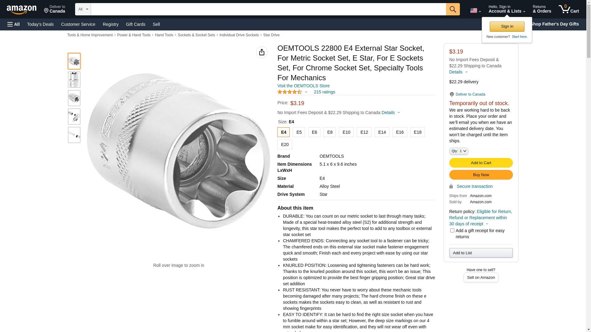 OEMTOOLS 22800 E4 1/4 Inch Drive External Star Socket. Deep marking for easy identification won't wear off with exten...