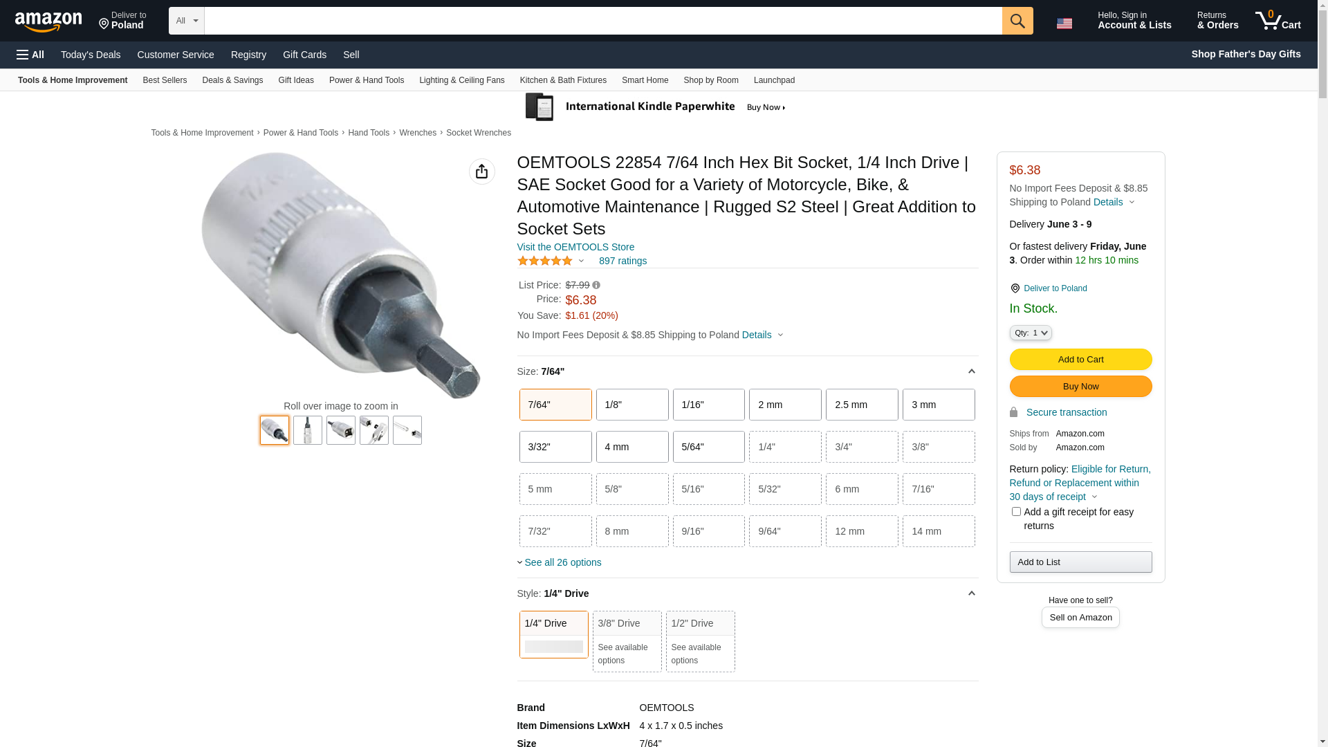 OEMTOOLS 22854 7/64 Inch SAE Drive Hex Bit Socket. Deep marking for easy identification won't wear off with extended ...