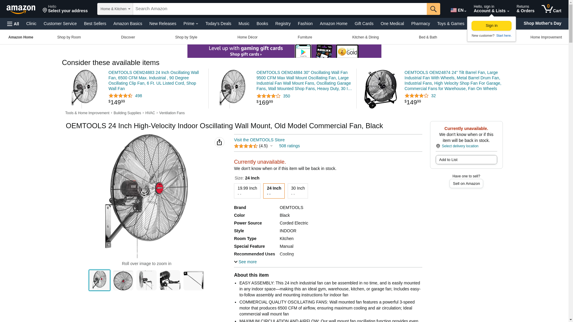 OEMTOOLS 24 Inch High-Velocity Indoor Oscillating Wall Mount, Old Model Commercial Fan, Black