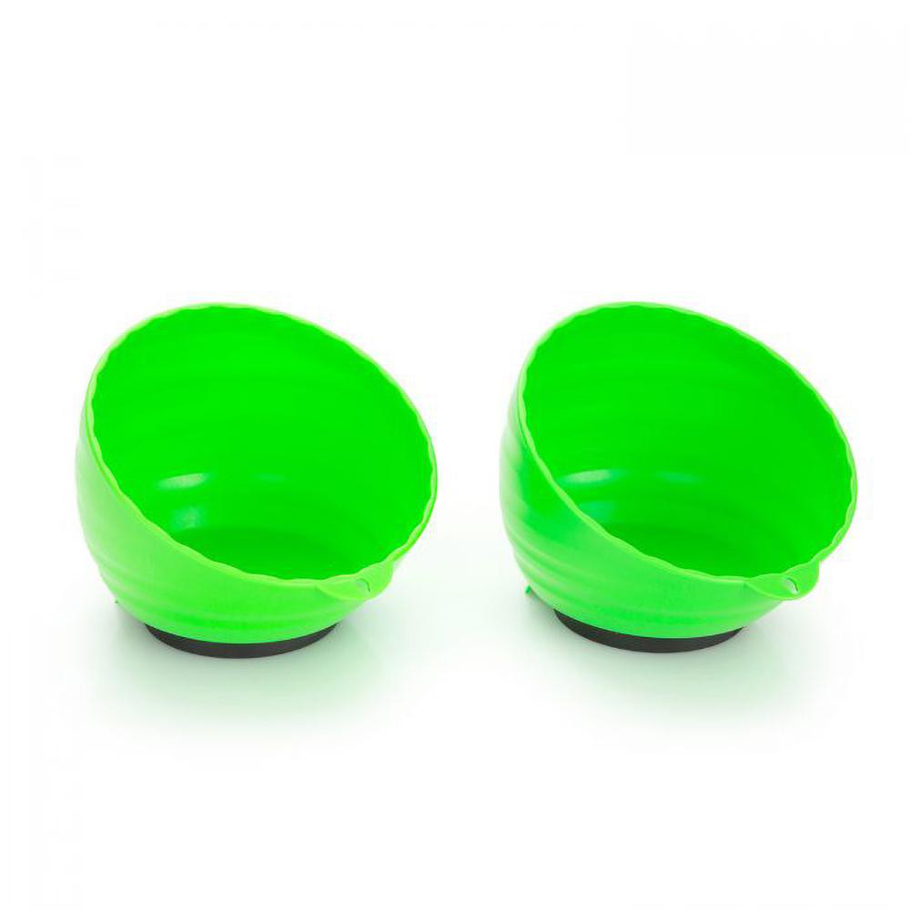 OEMTOOLS 25115 Green Magnetic Nut Cups, 2 Pack, Each Curved Magnetic Parts Tray Holds Up to 5 Pounds, Attaches To Metal Surfaces, Multi-Use Nuts And Bolts Organizer Set Made From Durable ABS Plastic