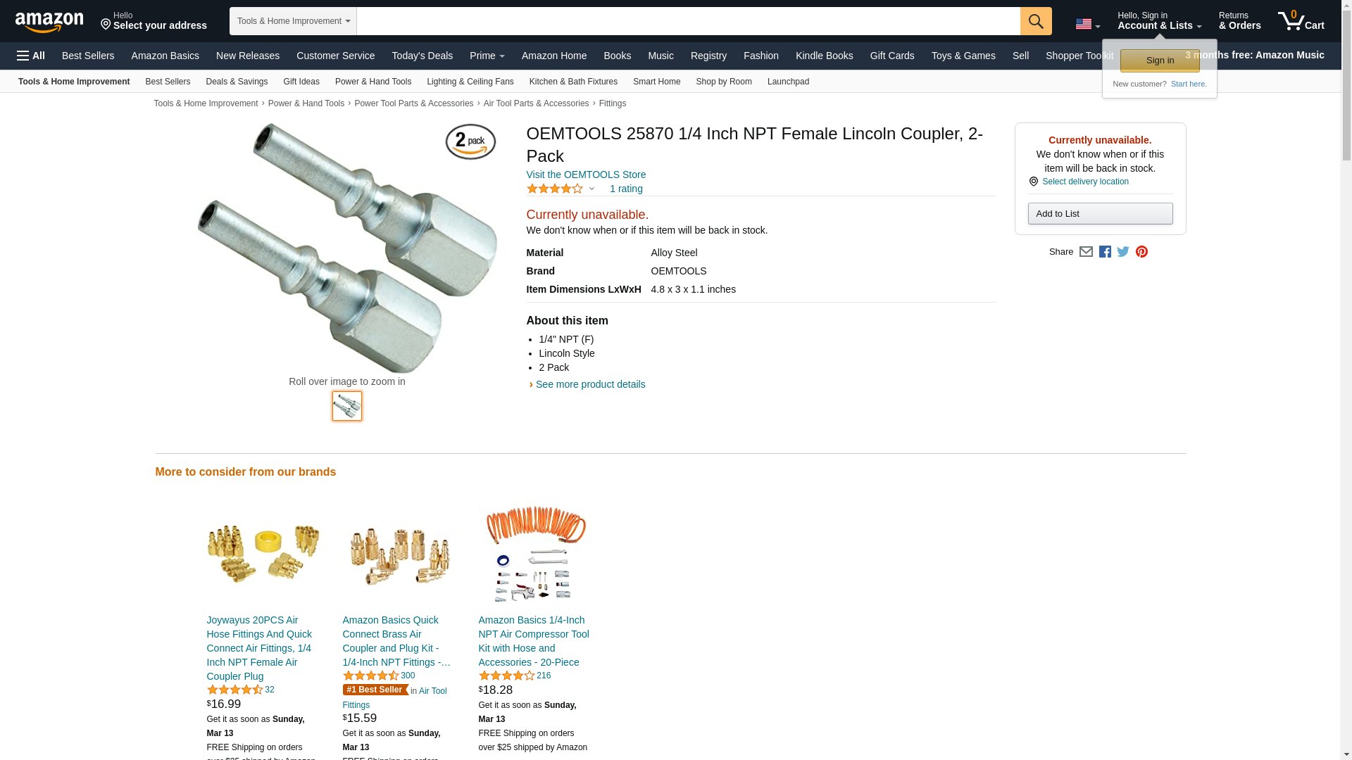 OEMTOOLS 25870 1/4 Inch NPT Female Lincoln Coupler, 2-Pack