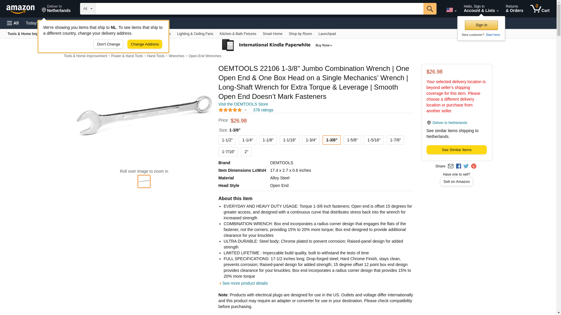 OEMTOOLS 22106 1-3/8" Jumbo Combination Wrench | One Open End & One Box Head on a Single Mechanics’ Wrench | Long-Shaft Wrench for Extra Torque & Leverage | Smooth Open End Doesn’t Mark Fasteners