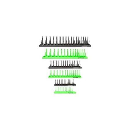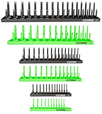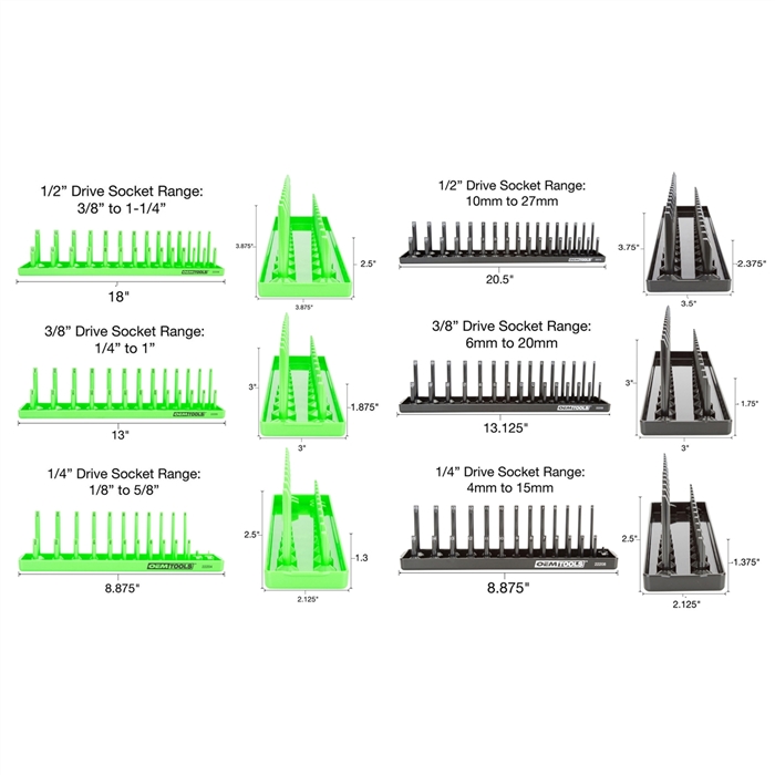 OEMTOOLS 22233 6 Piece SAE and Metric Socket Tray Set, SAE and Metric Socket Storage for Sizes 1/4", 3/8”, and 1/2" Drive, Socket Holders and Socket Organizer Tray for Toolbox, Green and Black