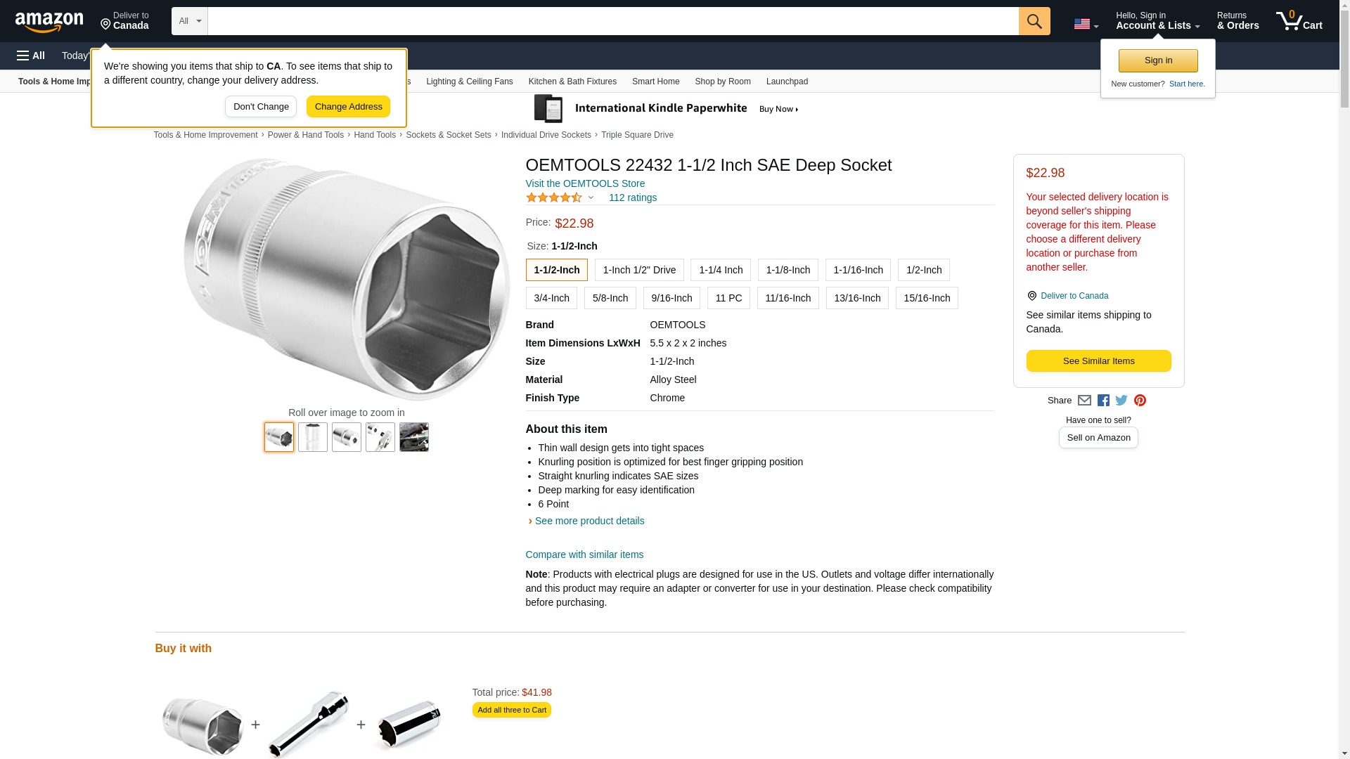 OEMTOOLS 22426 7/8 Inch SAE Deep Socket