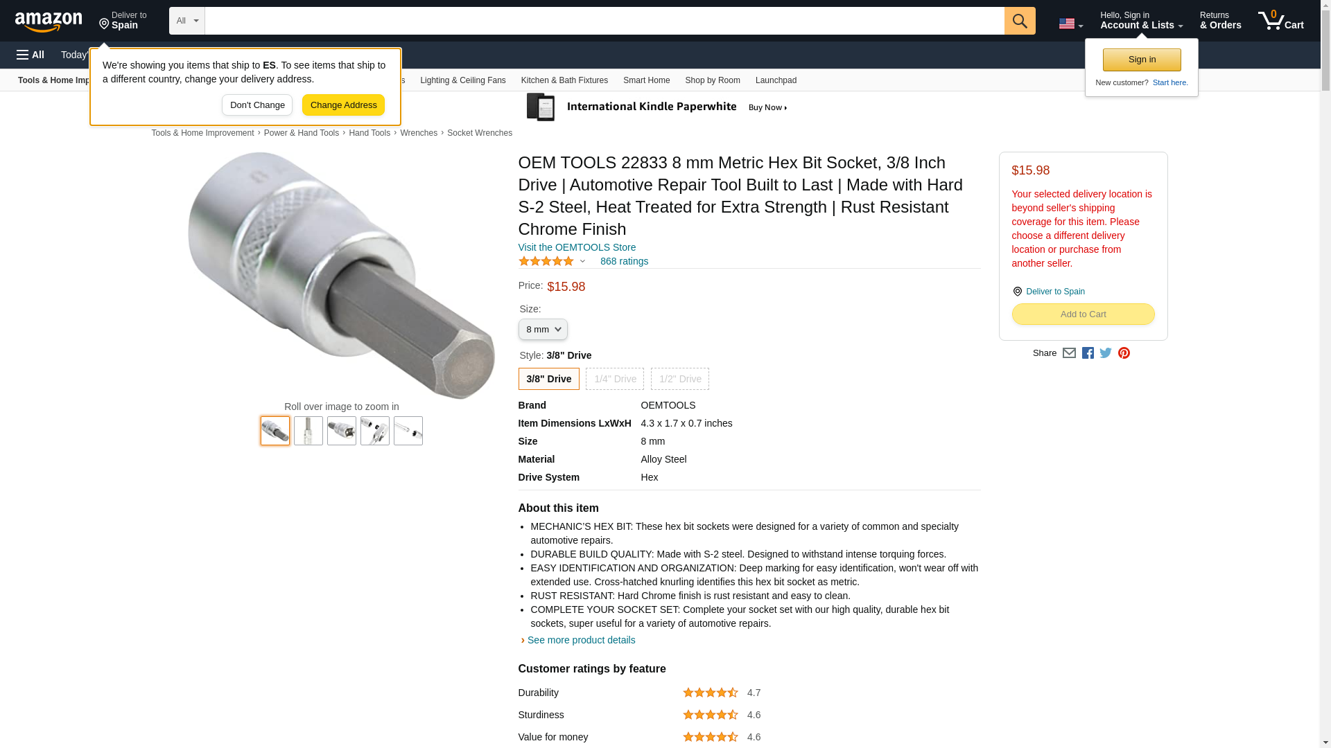 OEMTOOLS 22833 8mm Metric Drive Hex Bit Socket. Deep marking for easy identification won't wear off with extended use...