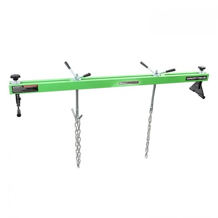 - PRODUCT SPECIFICATIONS: (1) 1100 Lb. Engine Support Bar; Dimensions: 58.25" x 13.50" x 9.75"; Two 38" Chains; Capacity: 1100 Lbs.; Hooks Can Adjust from 29.50" to 57" Wide; 3 Channels to Adjust for Universal Applications; Anti-Slip Rubber Feet; Weight: 38.1 Lbs.