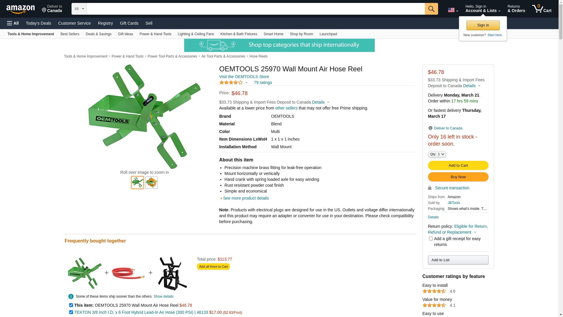 OEMTOOLS 25970 Wall Mount Air Hose Reel