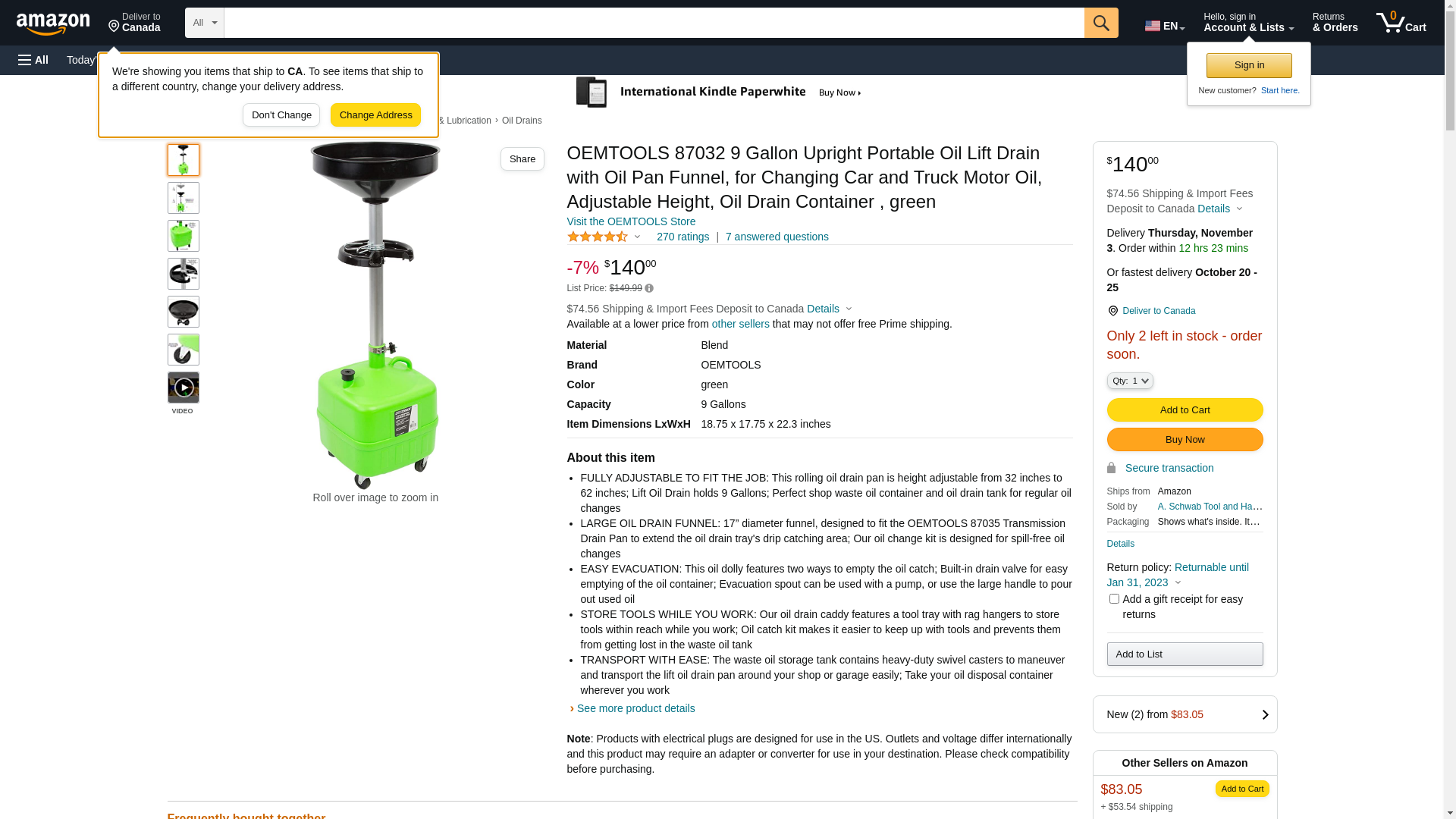 OEMTOOLS 87032 9 Gallon Upright Portable Oil Lift Drain with Oil Pan Funnel, for Changing Car and Truck Motor Oil, Adjustable Height, Oil Drain Container , green