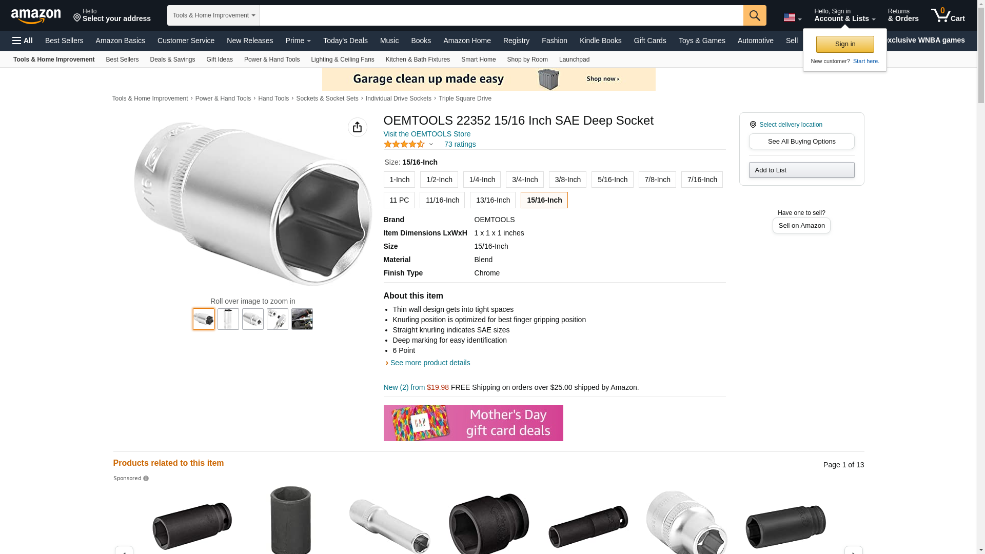 OEMTOOLS 22352 15/16 Inch SAE Deep Socket