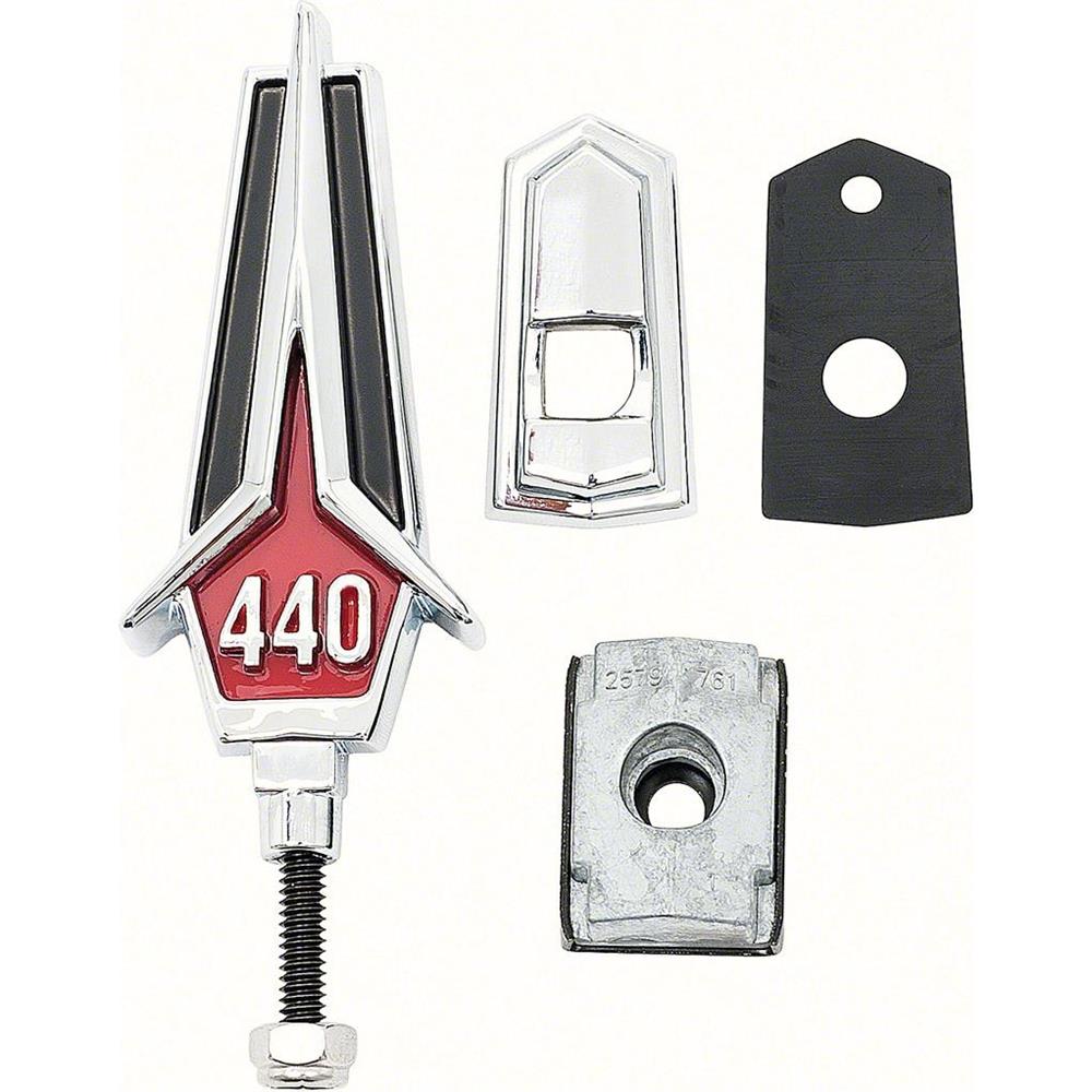 OER 2785534 1967 Plymouth GTX 440 Hood Ornament Assembly Set