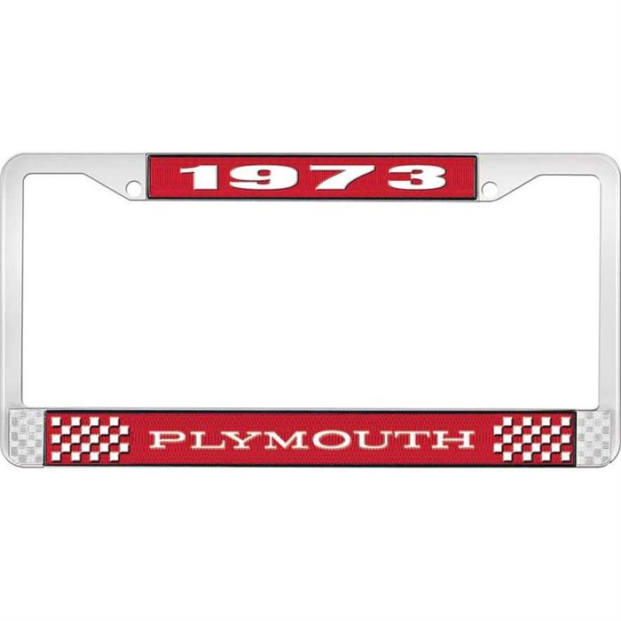 OER LF122173C 1973 Plymouth License Plate Frame, Red/Chrome