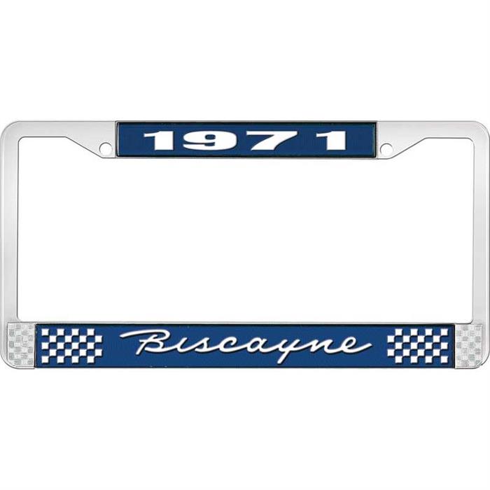 OER LF2267101B 1971 Biscayne Blue/Chrome License Plate Frame