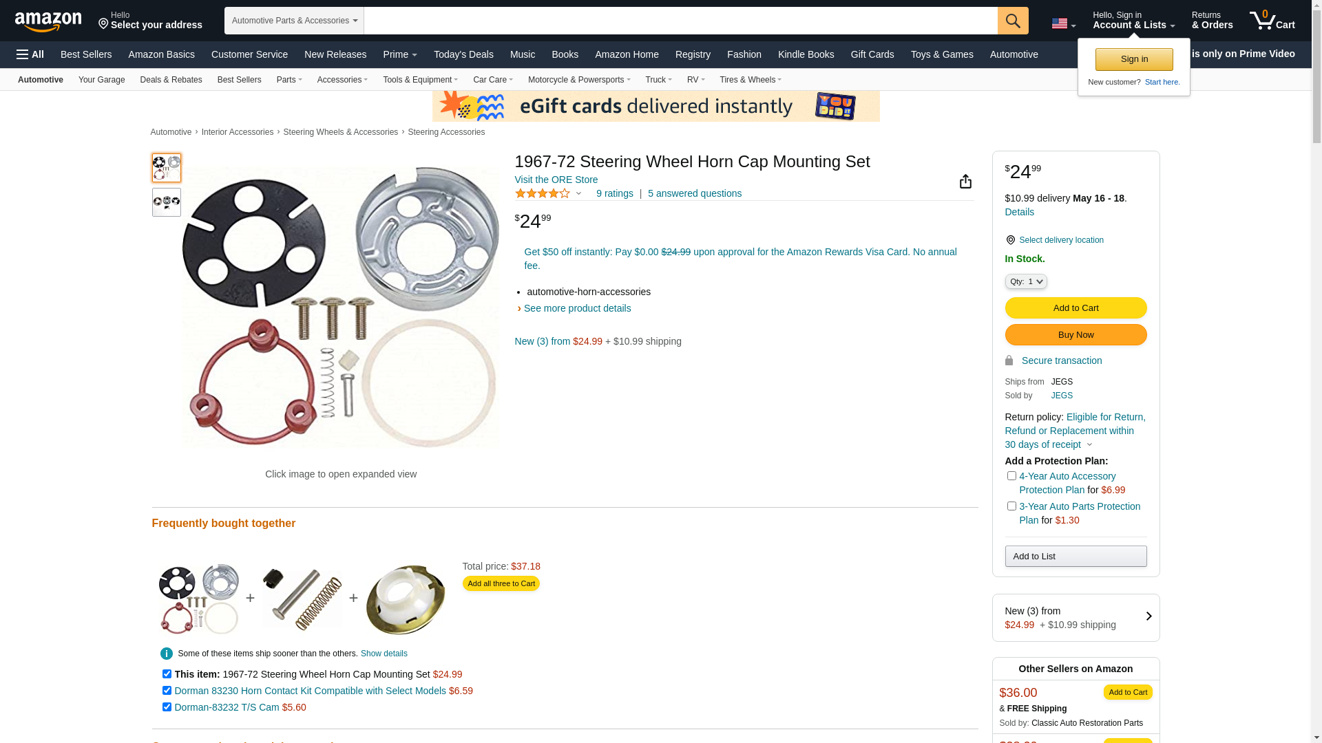 1967-72 Steering Wheel Horn Cap Mounting Set