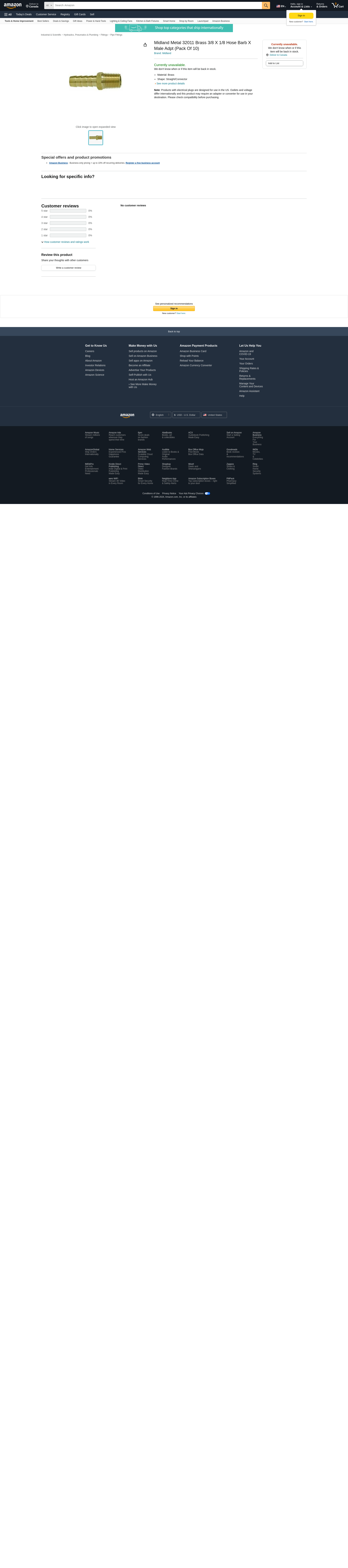 Midland Metal 32011 Brass 3/8 X 1/8 Hose Barb X Male Adpt (Pack Of 10)