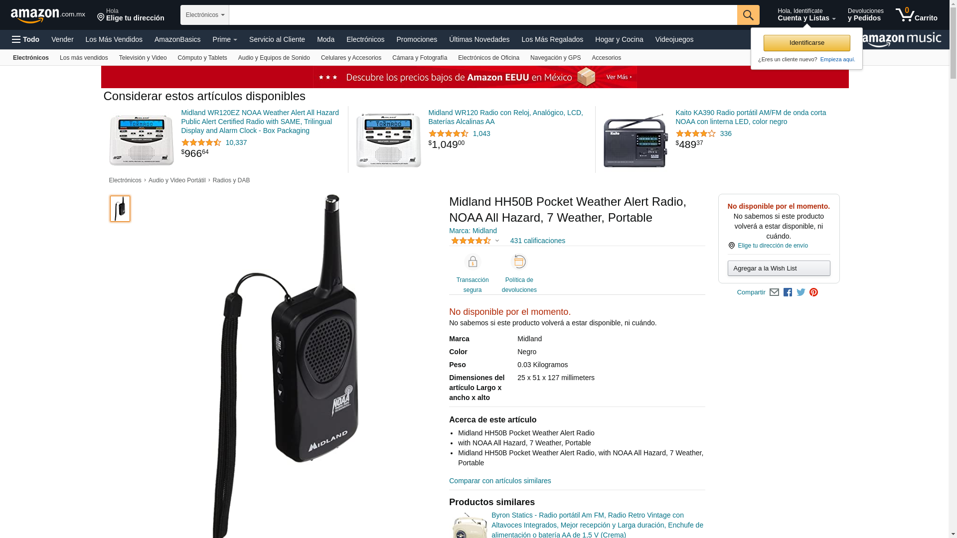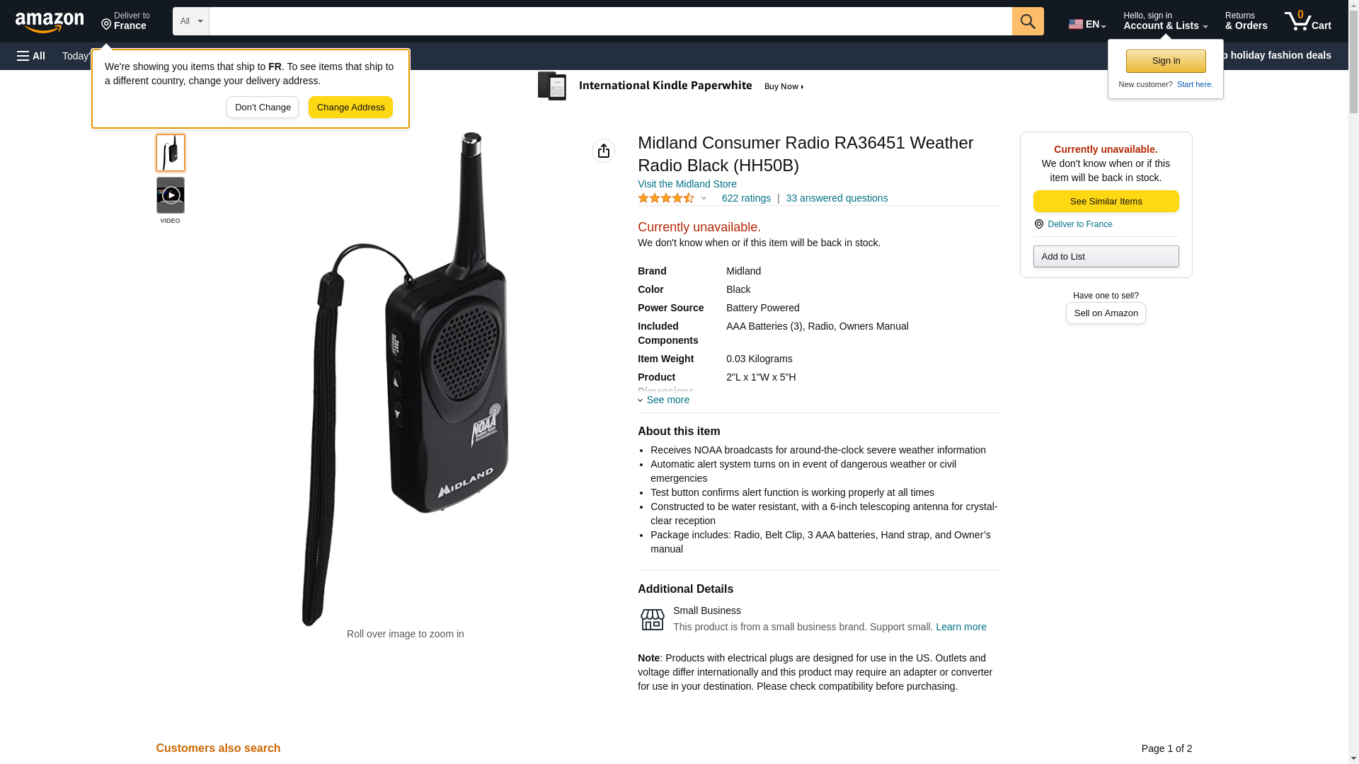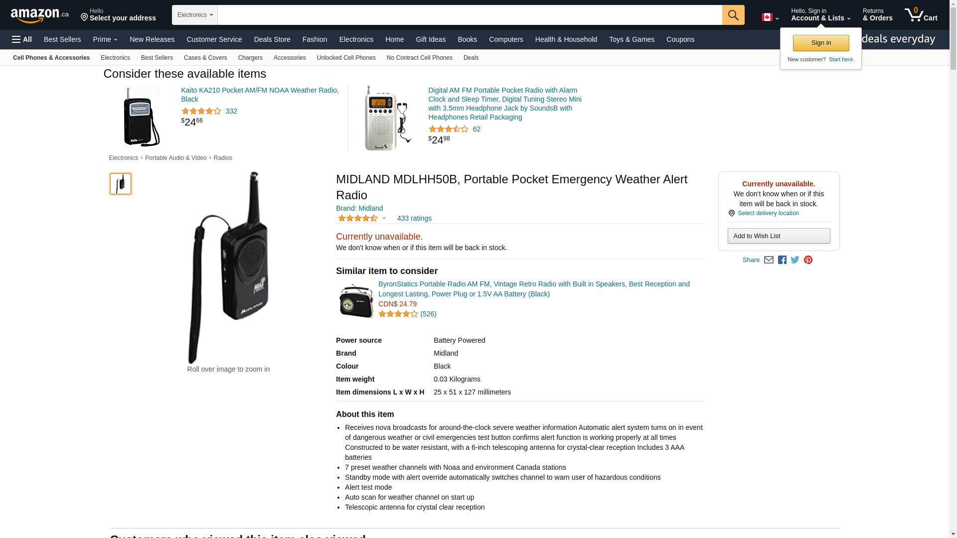 Midland Consumer Radio RA36451 Weather Radio Black (HH50B)