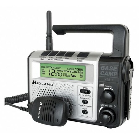 Midland® - XT511 - Emergency Radio - 22 Channel Two-Way Base Camp Radio with 5 Power Options, 121 Privacy Codes, 3-LED Flashlight & NOAA Weather Scan + Alert - Gray/Black