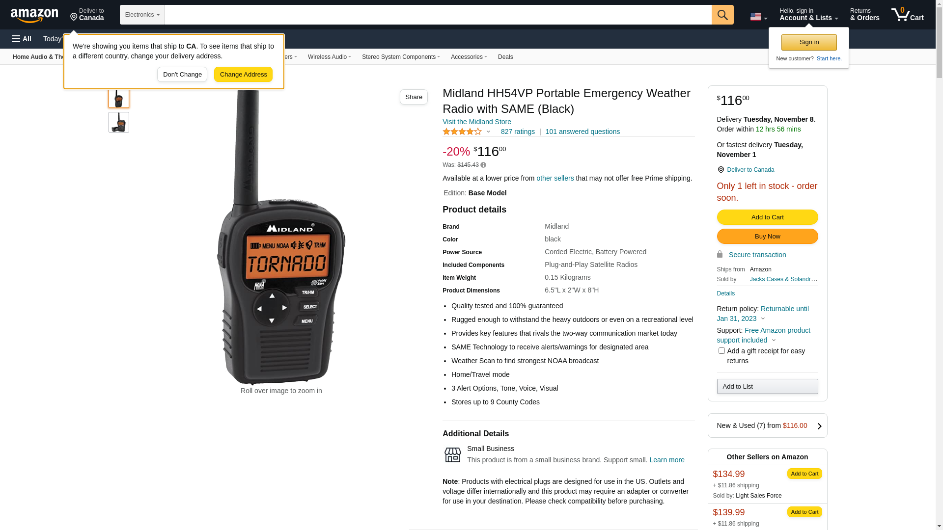 S.A.M.E. technologyWeather scan.midlandradio.Home and travel modesStores 9 county codesFeatures tri-color LED and large backlit LCD displayRequires 3 AA batteries (not included)Includes belt clip and AC adapter
