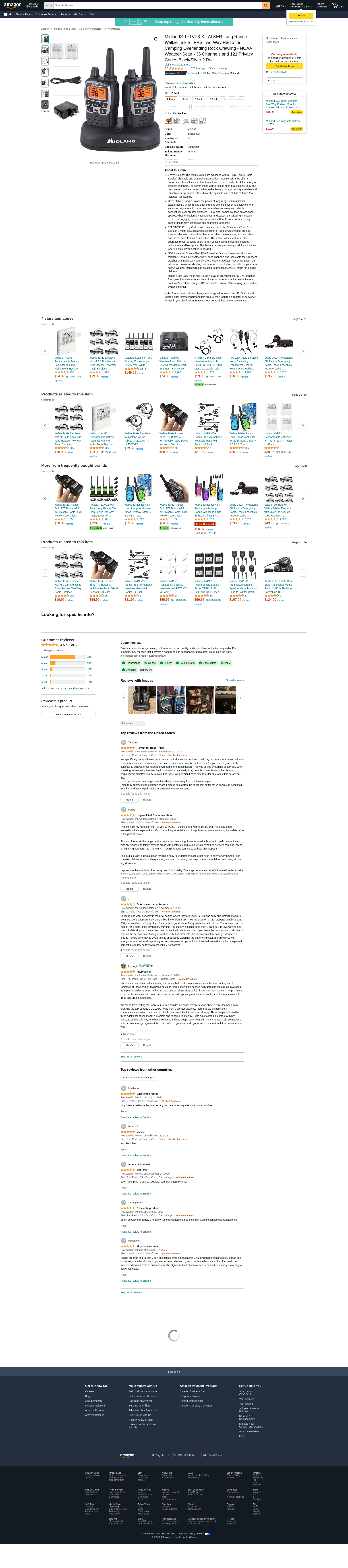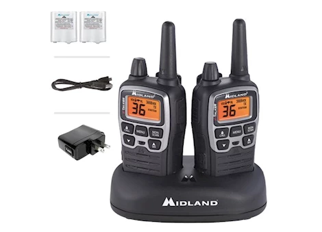 Midland® T71VP3 X-TALKER Long Range Walkie Talkie - FRS Two-Way Radio for Camping Overlanding Rock Crawling - NOAA Weather Scan - 36 Channels and 121 Privacy Codes Black/Silver 2 Pack
