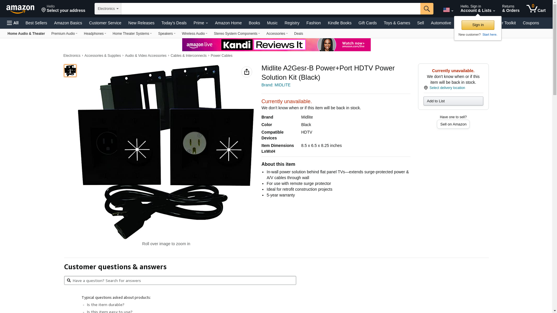 | Feature | In-wall power solution behind flat panel TVs-extends surge-protected power & A/V cables through wall |