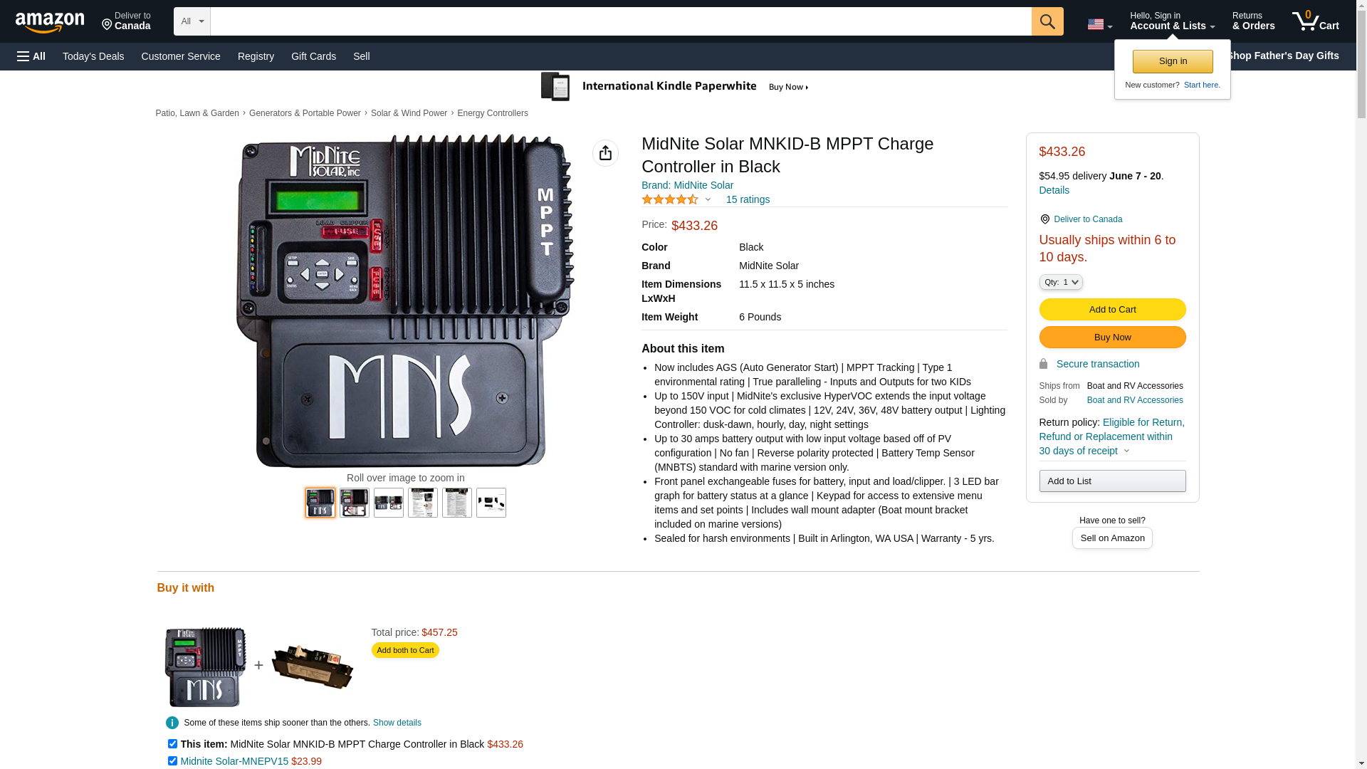 <b>MidNite Solar MNKID-B MPPT Charge Controller in Black.</b> For solar only. <p> The KID is the most versatile medium sized charge controller on the market. Ideal for small renewable energy systems. The KID allows for true input paralleling. As your power needs grow, add more modules to the array and a second KID. This will give twice the power from a single array. <p> <b>THE KID IS CERTIFIED TO UL1741 & UL458 (MARINE SUPPLEMENT)</b> With the UL458 marine supplement, THE KID meets very strict vibration, environment, and thermal requirements. <p> Comes standard with wall mounting bracket. Model number MNKID-B for the Black standard and MNKID-W for the White standard version. Standard versions can be cut into the wall for a flush mount assembly and also come with a surface mount wall adapter to mount on the wall. <p> <b>AGS (Auto Generator Start)</b> The Kid is the first charge controller in the industry to feature a two wire Automatic Generator Start (AGS) as standard equipment. The KID detects when the generator is running by simply watching battery voltage over time. No extra wires or voltage sensing is required making installation a snap. <p> <b>Lighting Controller</b> The Kid has a fully adjustable intelligent lighting controller built in. It can turn lighting on at dusk for a select number of hours, turn it off for a length of time and then back on for a programmable number of hours before dawn. All time functions are fully adjustable, allowing users to save valuable energy. An additional feature in the lighting controller allows you to adjust the voltage needed on the PV module for the Kid to register "daytime". This is important if you are using the Kid for a solar street light and the lights are located above the PV modules. Most controllers would end up leaving the light off all night, but not the KID!