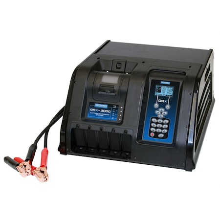 Features Delivers better efficiency in the shop, clearer test results and more accurate preventative maintenance decisions by helping to eliminate guesswork and wasted time charging defective batteries Fast, accurate, and reliable, the GRX can quickly determine the difference between recoverable and defective batteries Each charging session is highly controlled and automatically monitored throughout charging stops as soon as a battery can be returned to the customer or is determined to require replacement, putting your customers back on the road faster Easy to use with minimal training intuitive, icon-based menus and step-by-step testing/charging Conditions batteries to reduce early life failures Works with 6-volt and 12-volt vehicle batteries regular flooded, AGM, and Gel Integrated thermal printer enables you to print out reports for customer education and sales support