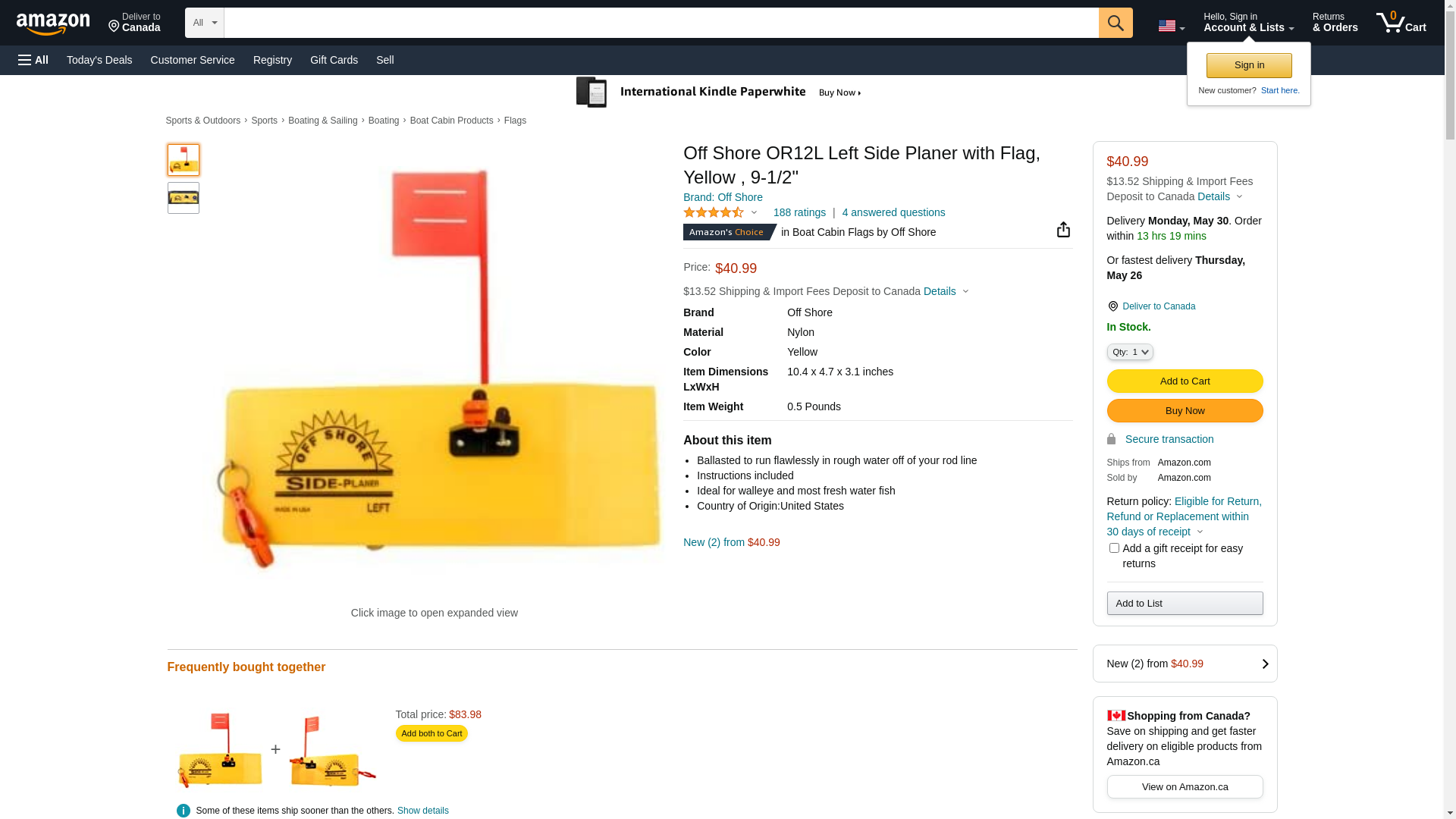 Off Shore OR12L Left Side Planer with Flag, Yellow , 9-1/2"