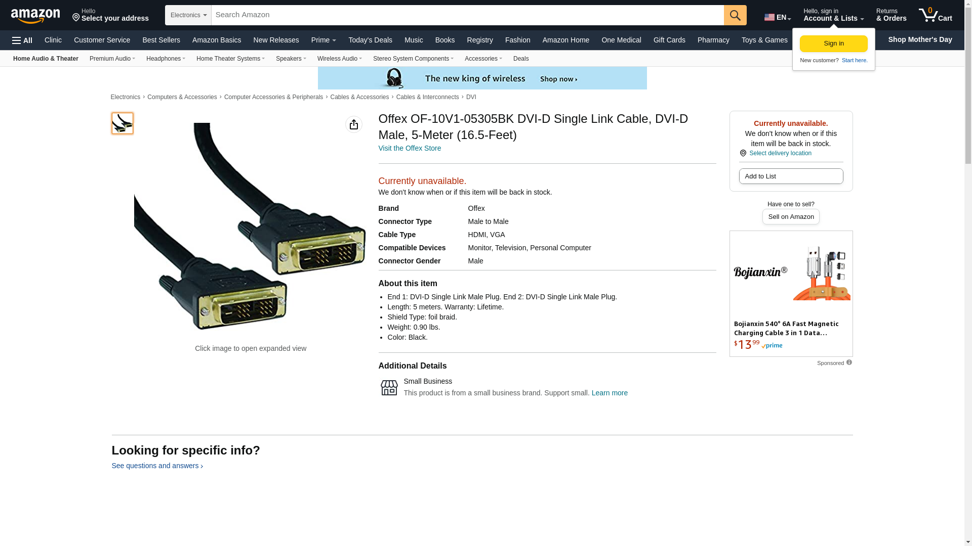 Offex OF-10V1-05305BK DVI-D Single Link Cable, DVI-D Male, 5-Meter (16.5-Feet)